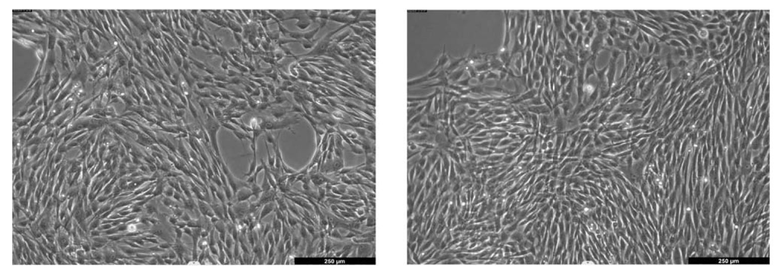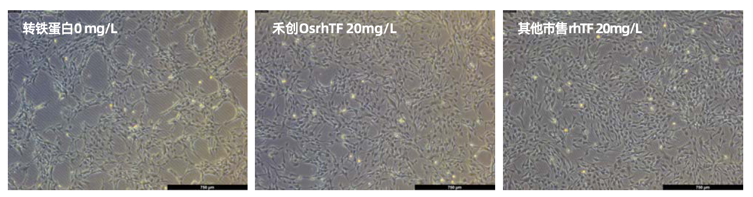 圖2:禾創(chuàng)(右)和其他市售rhTF(左)在MSC細(xì)胞無血清培養(yǎng)的細(xì)胞形態(tài)對(duì)比